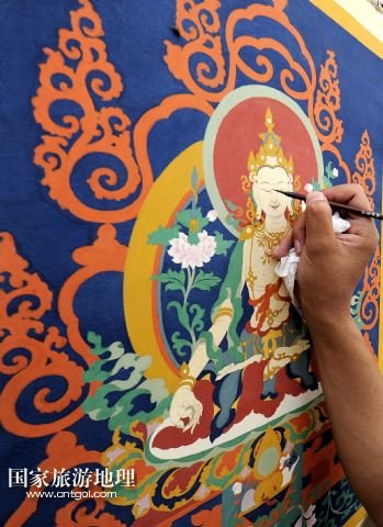 國家旅游地理 西藏拉薩8月4日訊 8月3日,一名畫師在現場演示唐卡繪制過程。當日,第三屆西藏“唐卡藝術博覽會”在拉薩羅布林卡舉行,共展出89名優(yōu)秀畫師的230多幅精品力作。唐卡作為藏族特有的繪畫,有上千年的歷史,已成為藏族文化的“名片”,受到國內外廣泛關注。 /新華社記者 覺果 攝