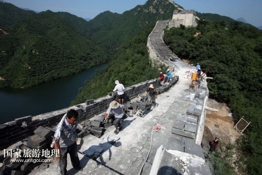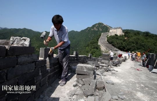 國家旅游地理 北京8月5日訊 8月4日下午,施工人員在北京懷柔西水峪古長城進(jìn)行修繕。西水峪古長城始建于明代,此次修繕部分總長960米,在嚴(yán)格保障結(jié)構(gòu)安全以及原有風(fēng)貌的前提下進(jìn)行恢復(fù)性修繕,修繕后將達(dá)到對游客開放攀登的標(biāo)準(zhǔn)。預(yù)計修繕工程將于今年10月底完成,屆時經(jīng)過專業(yè)部門驗收后有望對外開放。 /新華社發(fā)(卜向東 攝)