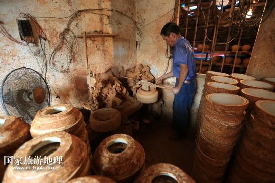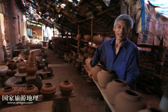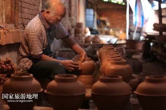 國家旅游地理 廣西河池8月6日訊 8月4日,顏福友師傅在廣西宜州市郊區(qū)他的制陶作坊里給陶器上釉。在廣西宜州市郊區(qū),65歲的顏福友師傅經(jīng)營著他的傳統(tǒng)制陶作坊,作坊里除了顏師傅,還有他的老伴和兩名幫工。顏師傅14歲開始當(dāng)學(xué)徒制作陶器,如今掌握著許多手工制陶的獨門絕技,在作坊里,幫工只負(fù)責(zé)干體力活,制陶的關(guān)鍵部分都是顏師傅親手完成的。由于顏師傅制作出的陶器質(zhì)量好,許多花卉盆景、釀酒、食品等工廠單位向他訂做陶器產(chǎn)品。但是由于手工制陶辛苦單調(diào),效率低下利潤不高,顏師傅的手藝面臨著斷代失傳的危險。 /新華社發(fā)(覃剛 攝)
