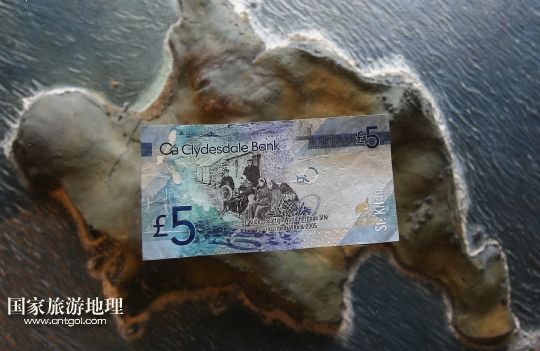 這是克萊茲代爾銀行發(fā)行的印有當年圣基爾達島村民照片的5英鎊紙幣(7月18日攝)。