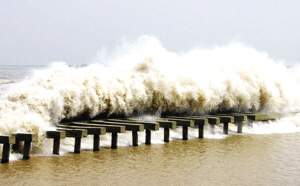 在蕭山美女壩和九號壩處,海塘轉(zhuǎn)彎,潮水沖擊丁字壩和江堤,同樣能形成“回頭潮”;錢塘江由西折向南面,到九溪珊瑚沙一帶,同樣有一條長長的江堤伸入江中,雖然潮水到達這里開始減弱,但當潮水方向與風向一致時,推波助瀾,潮浪也會很大。