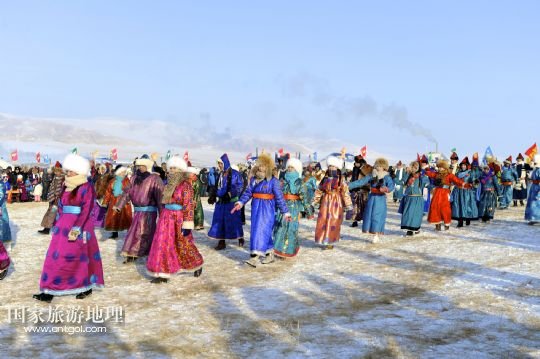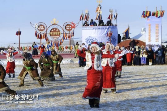 國(guó)家旅游地理 內(nèi)蒙古呼倫貝爾12月23日訊 12月23日,演員在冰雪那達(dá)慕上表演舞蹈。當(dāng)日,內(nèi)蒙古第十四屆冰雪那達(dá)慕暨巴爾虎草原祭火文化節(jié)在內(nèi)蒙古自治區(qū)呼倫貝爾市陳巴爾虎旗開(kāi)幕,吸引了約2萬(wàn)人參加。本屆冰雪那達(dá)慕將冰雪主題與獨(dú)特的民俗風(fēng)情巧妙結(jié)合,活動(dòng)包括祭祀儀式、實(shí)景表演、歌舞演出和傳統(tǒng)體育競(jìng)技等。 /新華社記者 金宇 攝