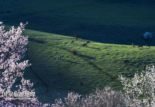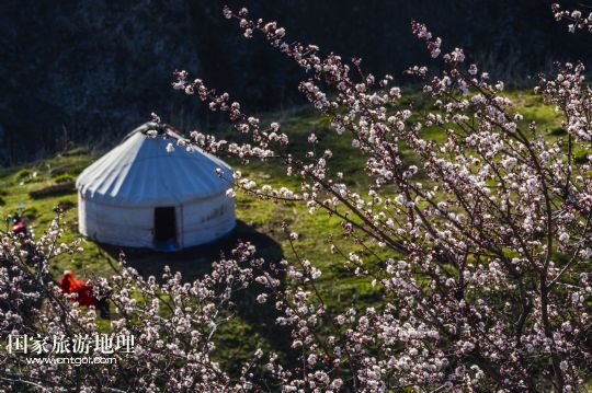 國(guó)家旅游地理 新疆伊犁4月12日訊 新源縣吐爾根鄉(xiāng)雪山映襯下的一棵杏樹(4月9日攝)。進(jìn)入四月,位于新疆伊犁哈薩克自治州新源縣吐爾根鄉(xiāng)的原始杏花林進(jìn)入盛花期,杏花林鑲嵌在山間,猶如一幅美妙的畫卷。 /新華社記者 趙戈 攝
