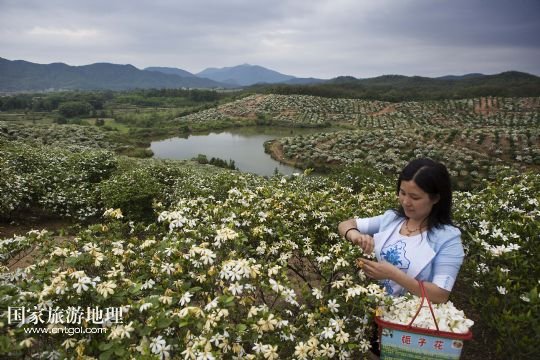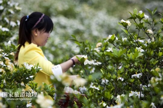 國家旅游地理 江西九江5月24日訊 5月24日,游客在黃梔子種植基地采摘梔子花。小滿時節(jié),在位于鄱陽湖畔的江西省九江市都昌縣土塘鎮(zhèn)潭湖村的坡嶺上,春輝黃梔子專業(yè)合作社6個種植基地的兩千多畝黃梔子全面進(jìn)入盛花期,種植園內(nèi)芳香四溢。黃梔子是傳統(tǒng)中藥材,花朵可觀賞、食用,果實(shí)可用于醫(yī)藥、染色、化妝品等領(lǐng)域。成立于2007年的都昌春輝黃梔子農(nóng)民專業(yè)合作社近年來致力于實(shí)施科技推廣、標(biāo)準(zhǔn)化種植和專業(yè)化經(jīng)營黃梔子,將黃梔子從“飄香”經(jīng)濟(jì)延伸到“染色”“藥用”深加工,進(jìn)軍省內(nèi)外市場。 /新華社發(fā)(傅建斌 攝)