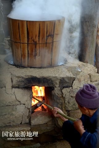 6月21日,在湖北省宣恩縣箭竹坪村的榨油房里,“打榨佬”將碾細(xì)的菜籽放入木甑猛火蒸熟。