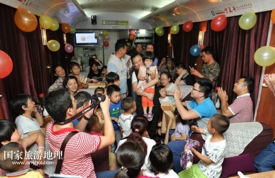 國家旅游地理 寧夏銀川6月1日訊 5月31日晚上,蘭州鐵路局銀川客運(yùn)段寧夏號列車上的一線乘務(wù)人員為乘坐列車的孩子們舉辦了一場“歡慶六一”迷你晚會,通過才藝展示和贈送小禮品,讓旅途中的孩子們感受到溫暖和歡樂。新華社記者 彭昭之 攝