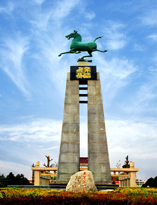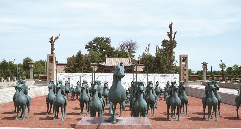 圖為中國(guó)旅游標(biāo)志馬踏飛燕出土地、全國(guó)重點(diǎn)文物保護(hù)單位、國(guó)家4A級(jí)旅游景區(qū)——武威雷臺(tái)景區(qū)