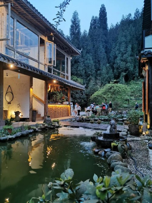 從成都主城區(qū)到眉山洪雅,自駕3個(gè)小時(shí)即可到達(dá),路況非常好。六七山居就在洪雅瓦屋山雅女湖旁,瓦屋山位于洪雅林場(chǎng)境內(nèi),被譽(yù)為全球最大的桌山,每年夏季,游客爭(zhēng)先到此避暑,每年冬季,游客蜂擁而至看雪。到了眉山洪雅,還可以順道去一下柳江古鎮(zhèn),去瓦屋山便會(huì)路過(guò)。在瓦屋山的層巒疊翠中,花溪河圍繞著具有獨(dú)特川南古民居風(fēng)格的吊腳樓,臨水而建,宛如一幅山水畫。